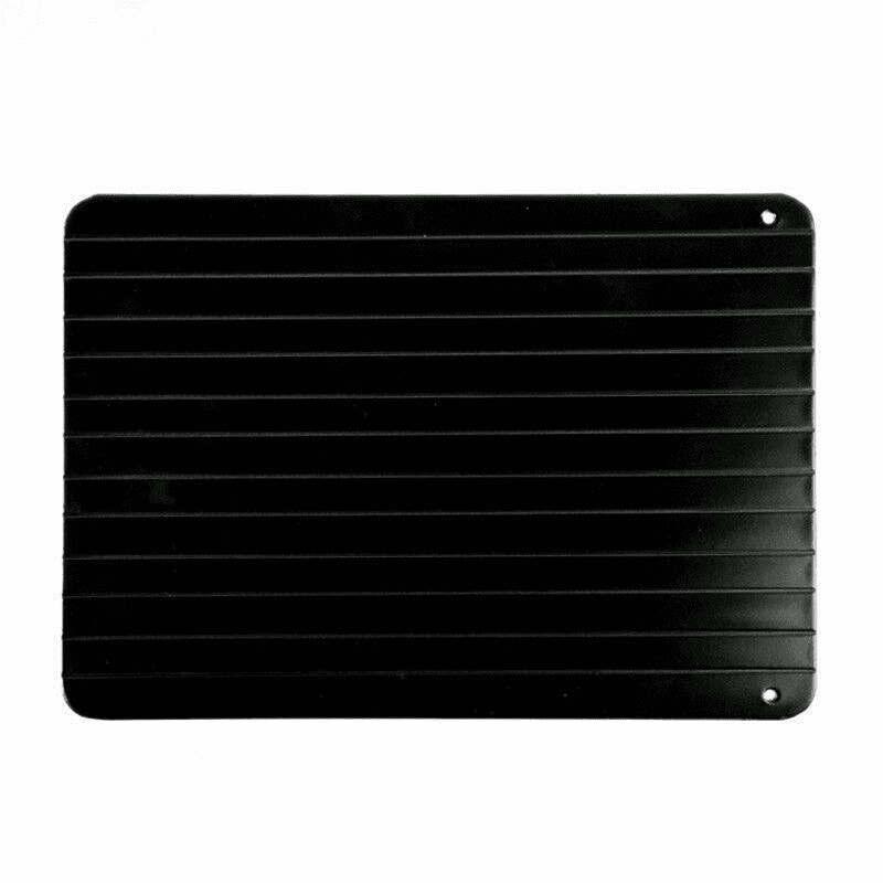 Fast Defrosting Tray Rapid Thawing Board Safe Defrost Meat Frozen Food PlateProduct DescriptionFeature:Principle: The thawing plate is a special alloy with a thermal conductivity of 20; 000 times that of ordinary metals; achieving high-speed heat exchange; allowing frozen foods to achieve the fastest natural thawing effectDefrosting within few minutes: Thaw chicken breasts; steak; pork chops; lamb chops and more in minutes depending on the thickness of your food; It can also defrost smaller food such as burgers; sausages; prawns and bacon.No chemicals or electricity: Through the contact of food with thawing plates using special environmentally friendly materials and processes; No need to use microwave; electricity or chemicals; even hot water is not need. Simply place frozen food onto the tray and it will defrost up to faster than at room temperature.Easy clean & Dishwasher safe: It is non-stick and very convenient to clean.Speed; short time; can effectively save the first choice time; and can maintain the original taste and nutrition of food; health and hygiene. Corrosion resistance; long service lifeSpecification:Material: AluminumColor:BlackSize:Approx.23*16.5*0.2cm/ 9.05*6.5*0.08inchNote:Please allow minor deviation due to manual measurement.Due to the difference between different monitors; the picture may not reflect the actual color of the item.Package included:1 x Fast Defrosting Tray