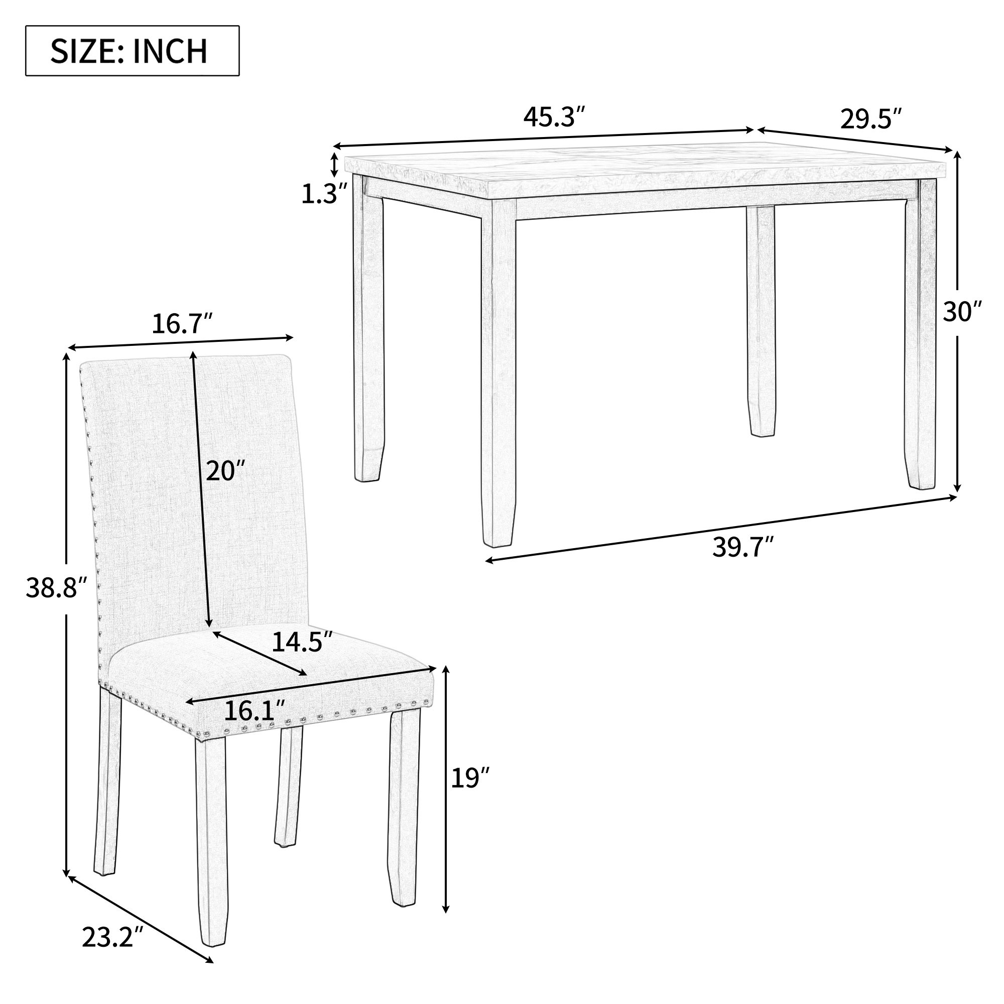 Faux Marble 5-Piece Dining Set Table with 4 Thicken Cushion Dining Chairs Home Furniture, White/Beige+Black