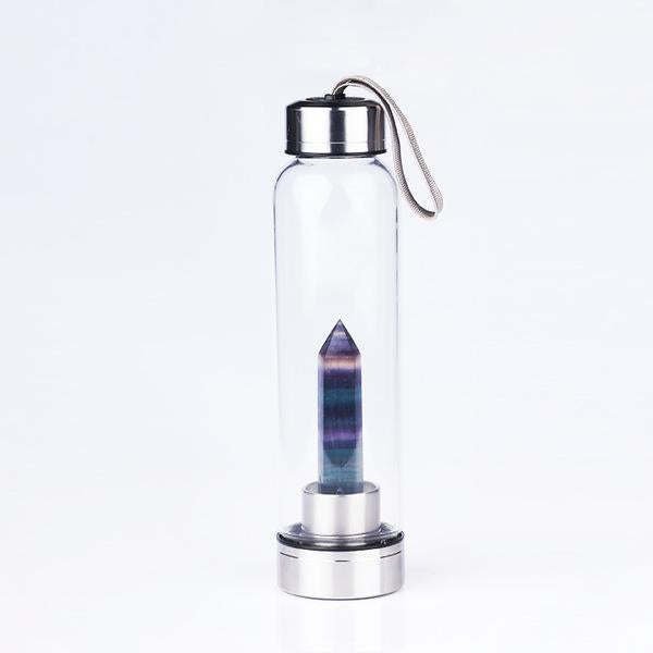 This sleek; 20.4 oz. glass bottle features a stainless steel top and a gorgeous; removable crystal infuser. Add fruits and herbs into the infuser to deliver natural flavor and nutrients directly to your drinking water. This bottle is a must have if you're into thisnew ageof powerful invigorating energy or if you're already enjoying the health benefits of the healing crystals. You'll start to enjoy the positive benefits of drinking crystal energized water in no time! The waterin this bottle will be charged with pure crystal energy throughout the day and drinking this natural crystal-infused water can have healing properties which can benefit in the long run...