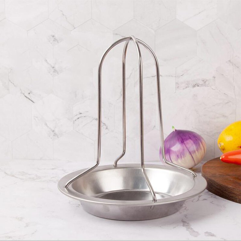 3.Ergonomic design,chicken roaster stand roasts poultry standing up to allow fats to drip off,the drip pan under the chicken rack could be held the fats,and the base accommodates beer can or another liquid to flavor the meat and keep it moist,quite easy to get the chicken off of it.